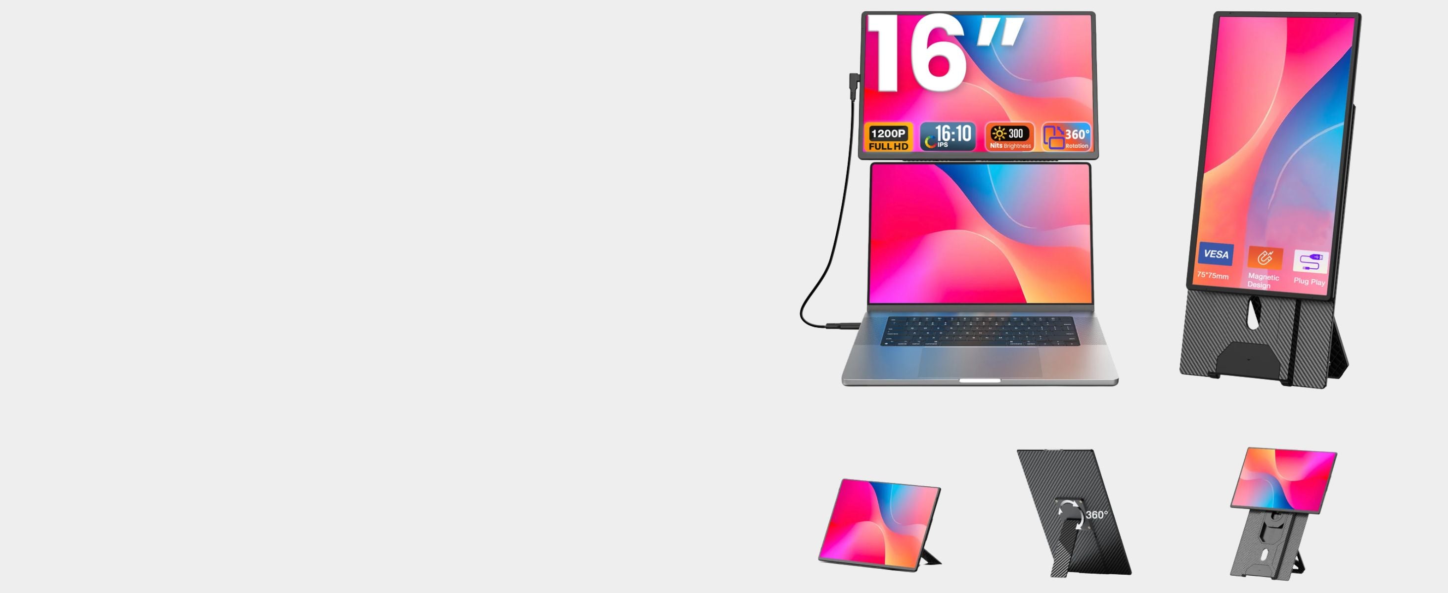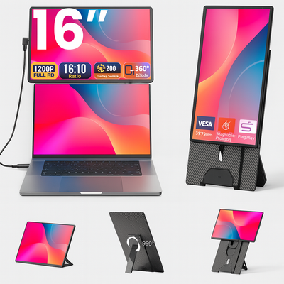 16" FHD SingleMonitor 1200P Plug & Play Enhanced Productivity Dual Screen Portable Monitor for Windows/Mac/Android
