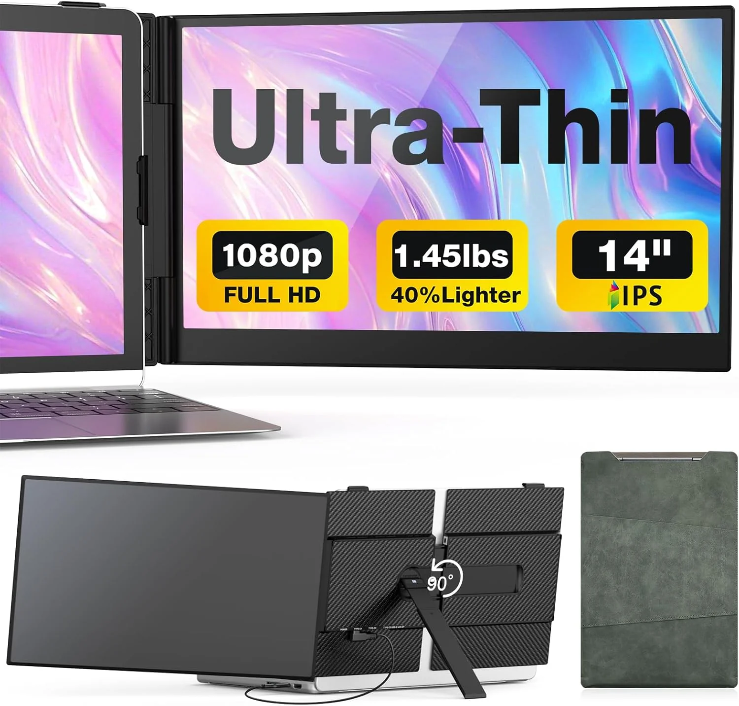 14" Ultra-thin SingleMonitor Portable FHD Laptop Screen Extender, Dual Display for Windows & Mac