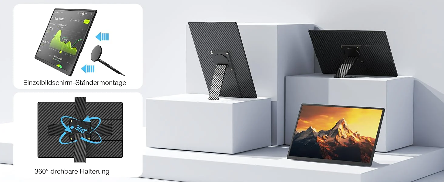 - 360° rotating, detachable design with adjustable height and tilt lets you customize your viewing angle for seated or standing use; ideal for presentations, remote work, and mobile setups
